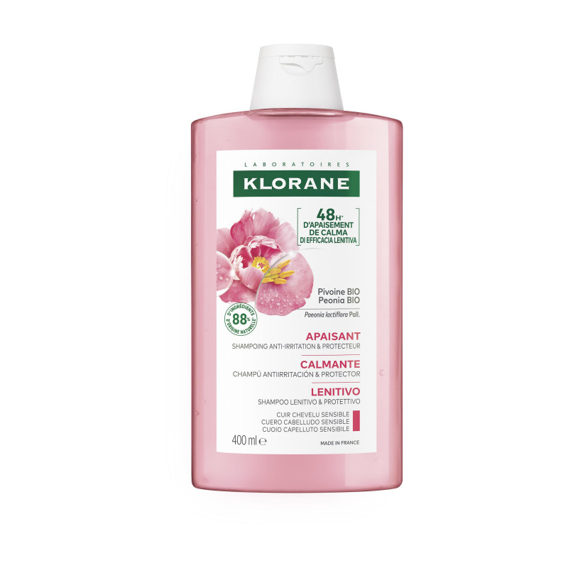 Klorane Capilar Champô Peónia para cabelos com couro cabeludo sensível e irritado, cria uma limpeza com suavidade. O seu perfume tem propriedades relaxantes e acalmam a sensação de irritação (prurido)