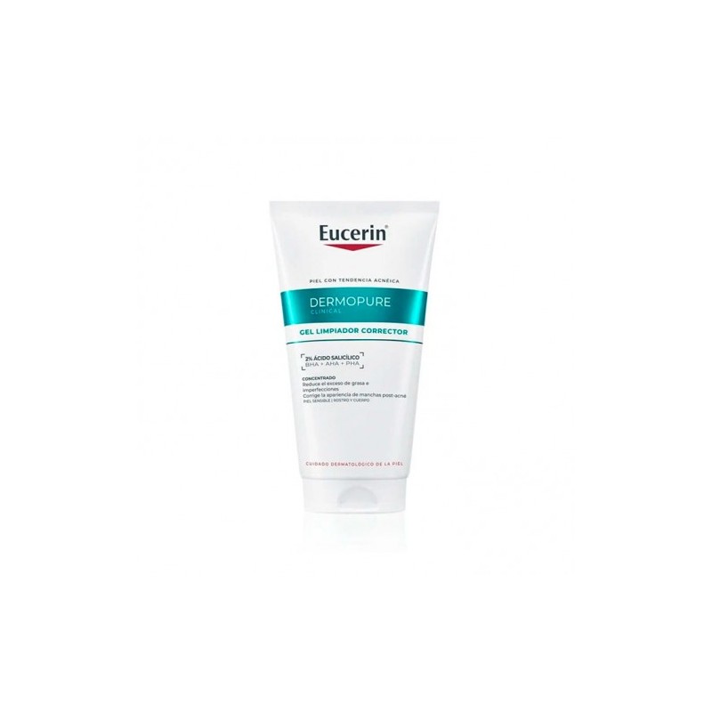 Eucerin DermoPure Clinical Gel de Limpeza Concentrado 150ml ajuda a corrigir imperfeições e marcas desde o primeiro passo. Contém a concentração de um sérum com 2% de Ácido Salicílico, AHA e PHA.